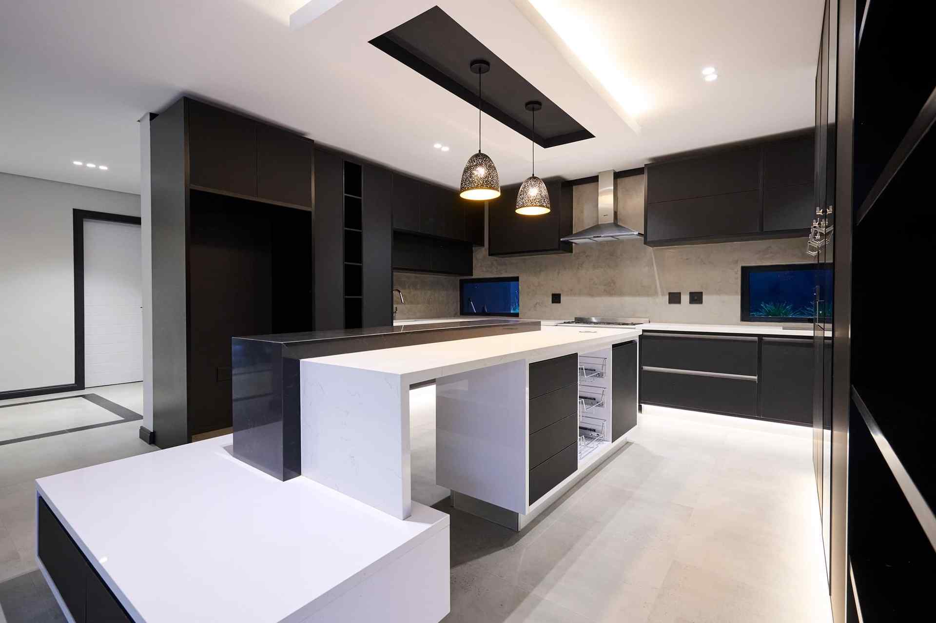 Designed with effortless functionality and minimalist style in mind, the principal floor features expansive living areas anchored by a bespoke gourmet kitchen. Equipped with SMEG appliances, dual ovens, gas and electric stovetops, soft-close cabinetry, and a large Caesarstone island, the kitchen is as beautiful as it is practical. A walk-in pantry and separate scullery ensure clean lines are maintained throughout.