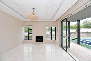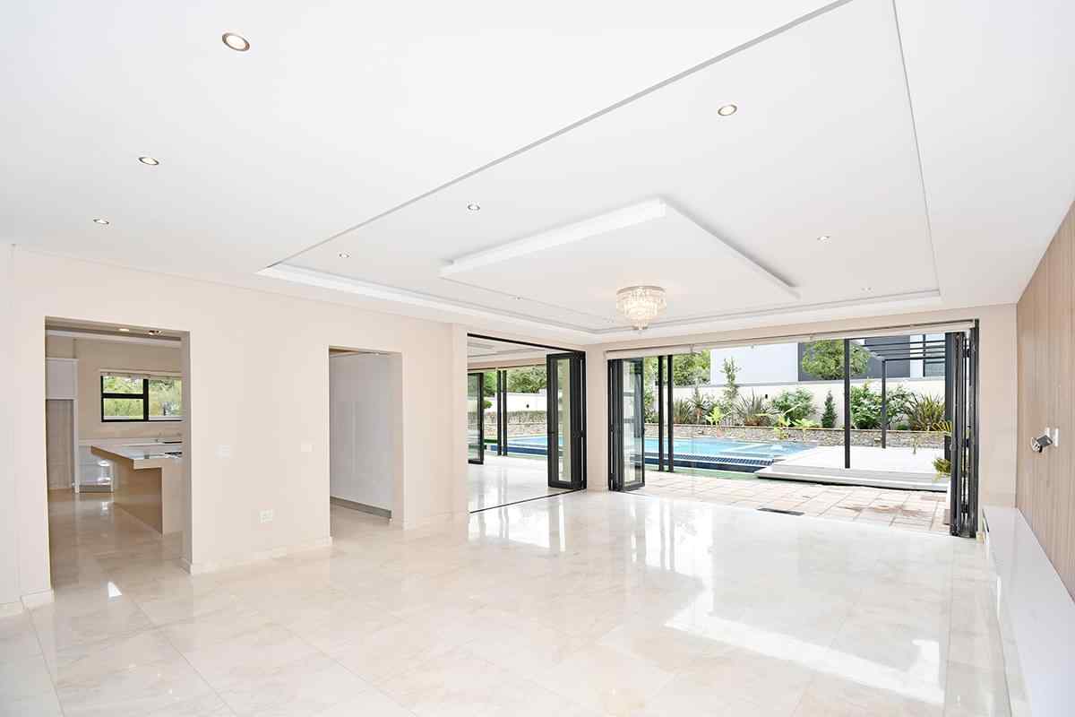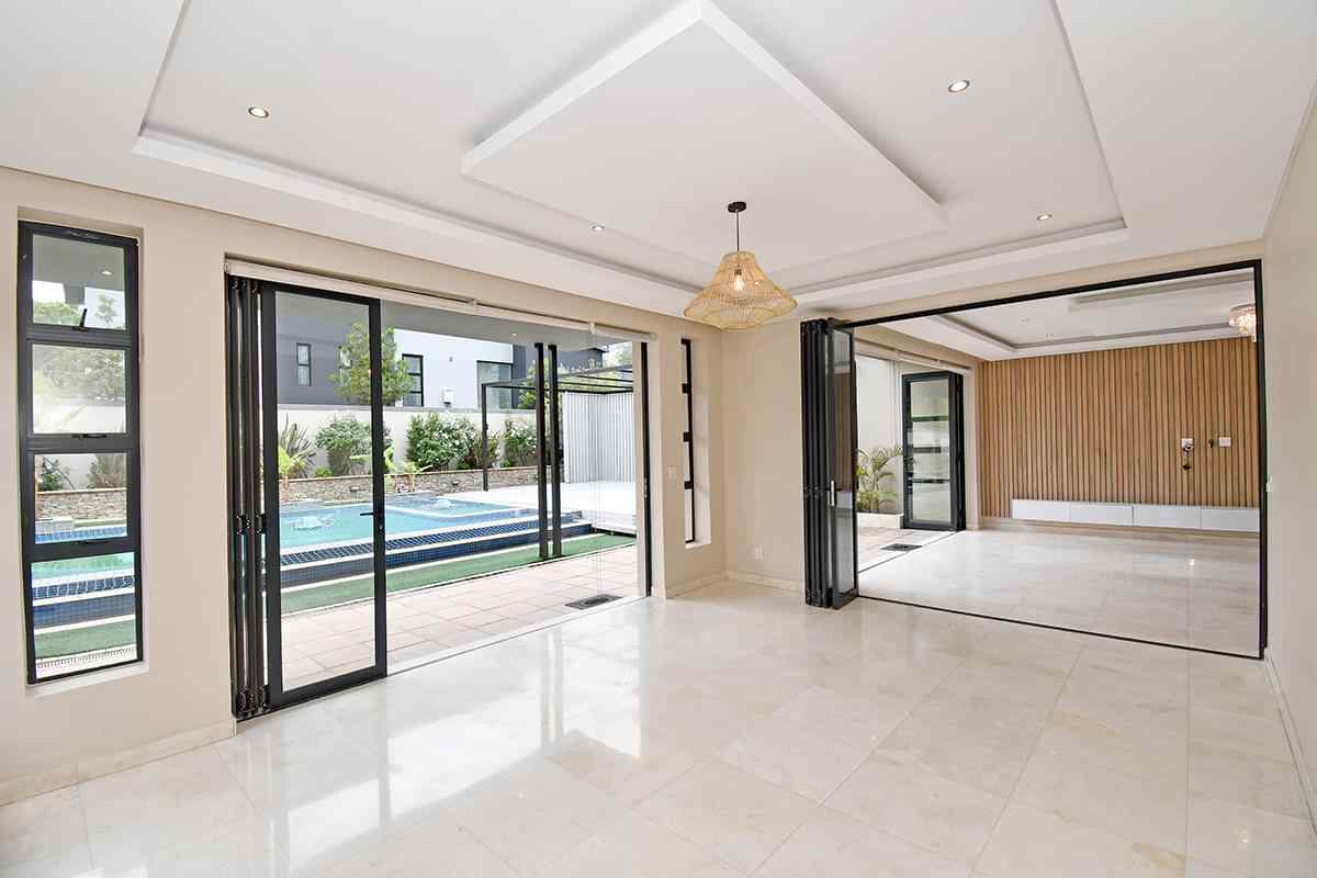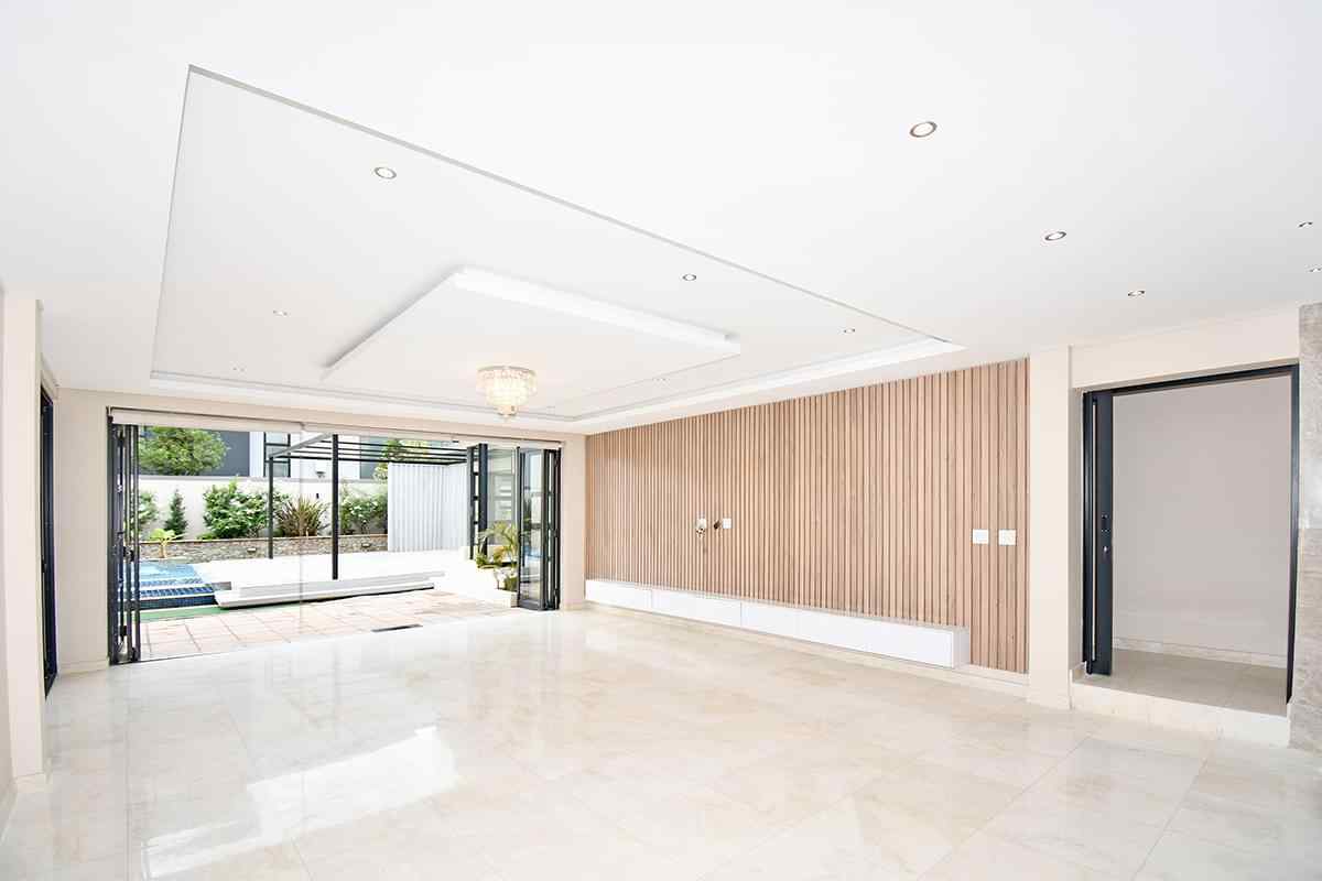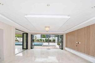 Stepping into the expansive, fully tiled lower level, your eyes are immediately drawn to the abundance of natural light streaming through floor-to-ceiling glass stacker doors that open along the entire length of the home. These doors seamlessly connect the indoor and outdoor spaces, creating a breathtaking open-plan entertainment area that includes the formal lounge, family room, dining area, and kitchen — all enhanced by wood-slat paneled feature walls, fireplace, striking chandeliers, and ambient recessed lighting. The established garden is neat and tidy and features a good sized swimming pool and large entertainment deck for those festive family gatherings all year round.
