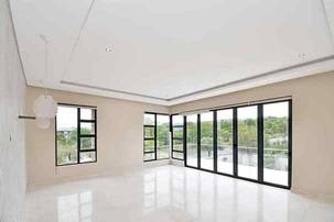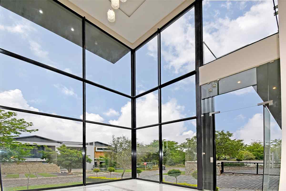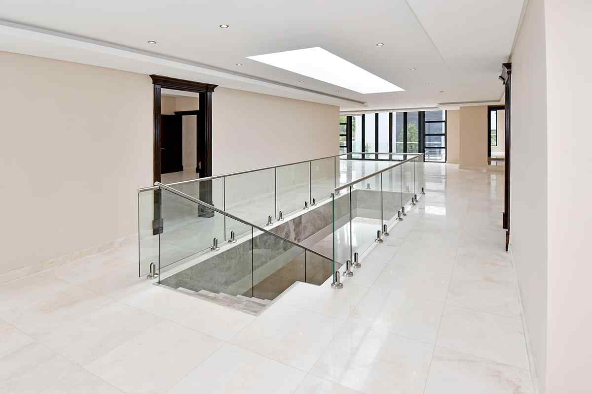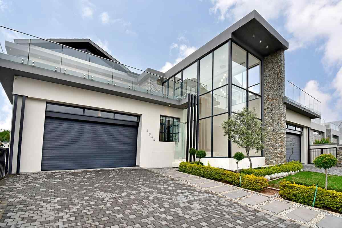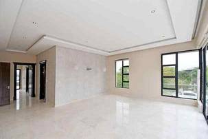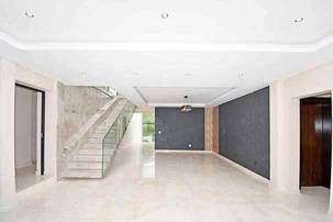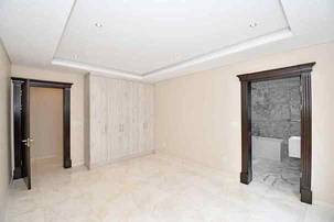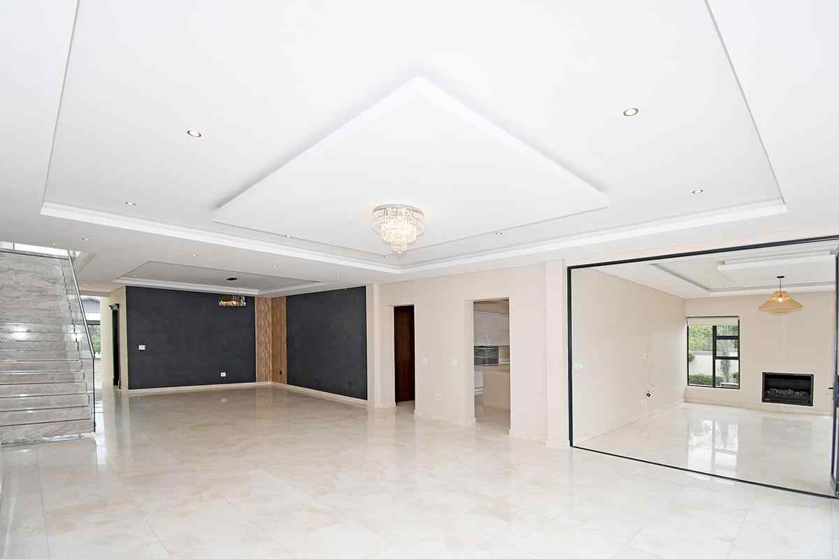 The grand arrival begins with a split paved driveway, each side featuring a double automated garage — providing parking for up to four vehicles — along with additional off-road parking to the left wing of the home. The double-volume glass cubical entrance hall makes an unforgettable first impression, setting the tone for the elegance and scale that unfolds within.