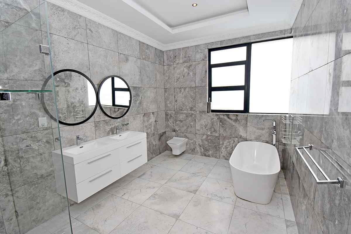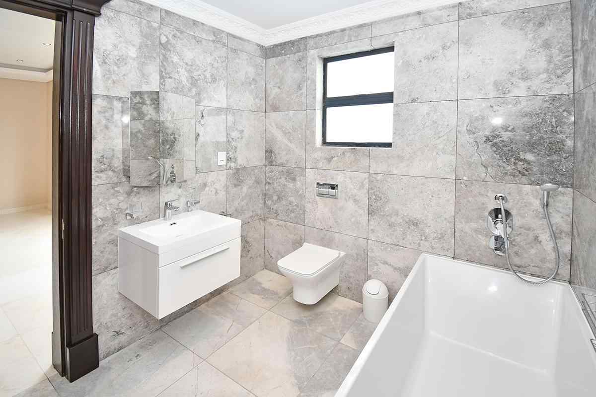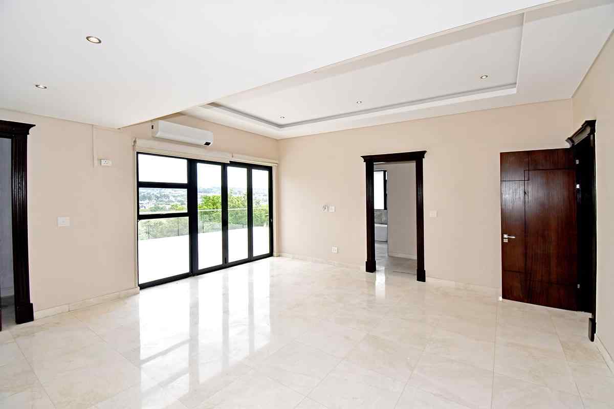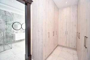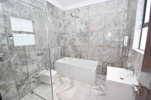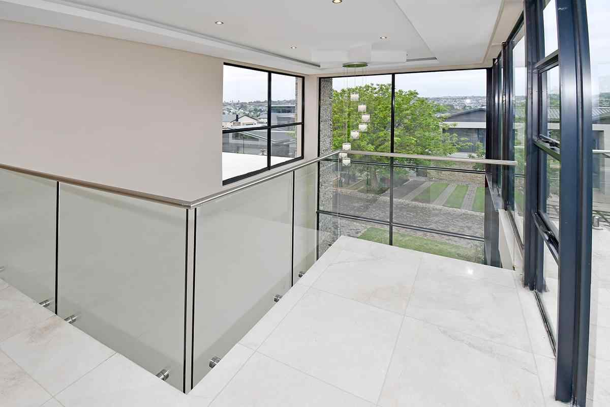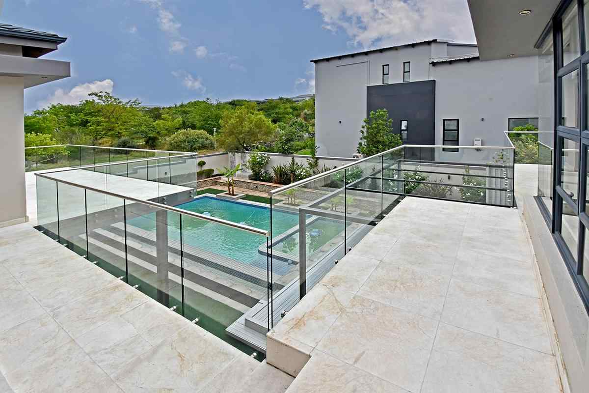 Ascending the beautifully crafted stone-tiled staircase to the upper level, you’ll find a spacious lounge area with travertine flooring and glass stacker doors opening to a large shared balcony overlooking the lush garden and pool below. The upper level houses five generous bedrooms, each with its own luxuriously appointed ensuite bathroom and built-in wardrobes. Some of the bedrooms also enjoy private balcony access with panoramic views of the Waterfall skyline. The Main bedroom is really spacious and boasts a walk-in wardrobe, balcony access through large glass stacker doors and a stunning full bathroom complete with a large shower and stand alone tub, perfect for those long hard days that require a long quiet soak in the tub.