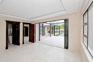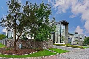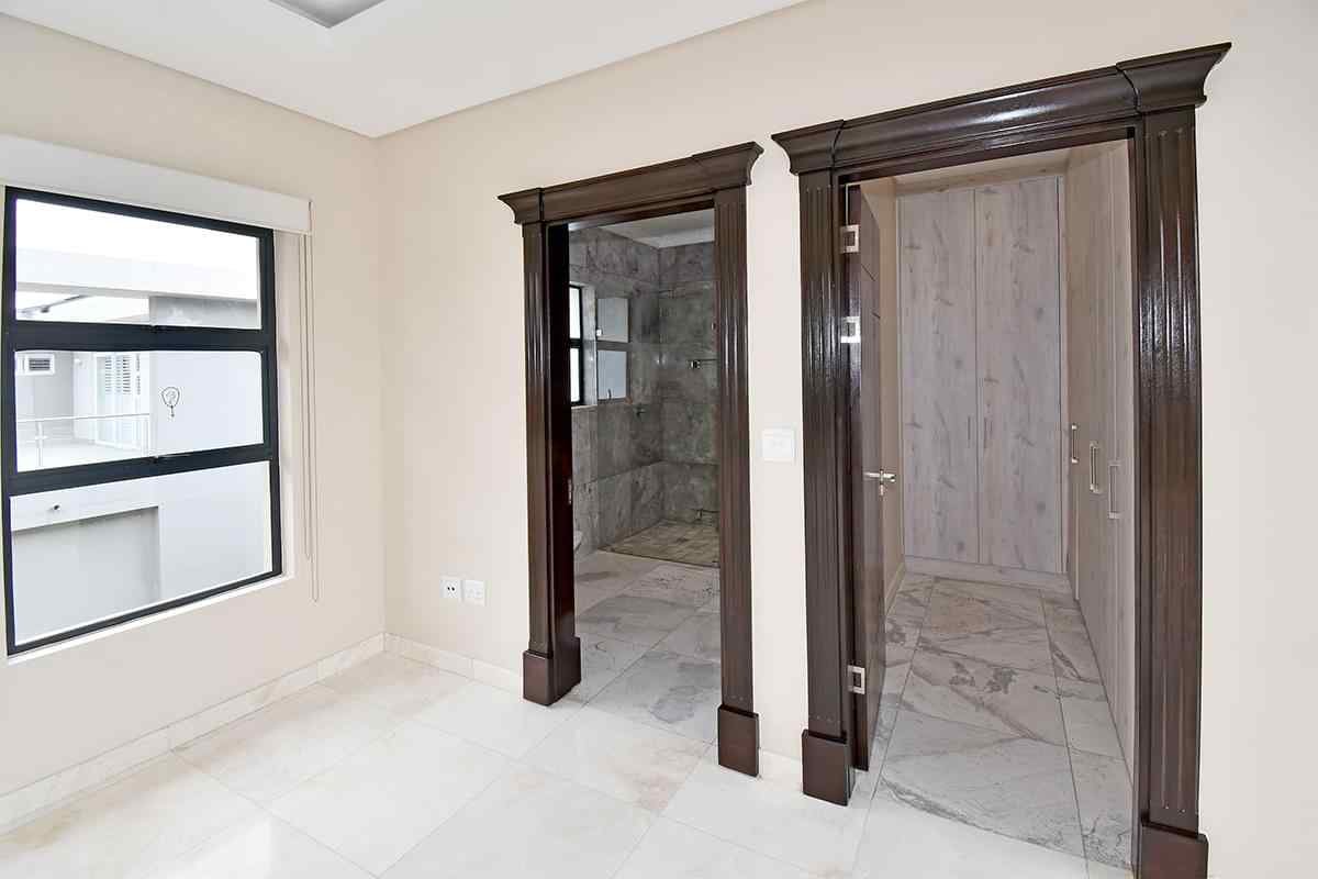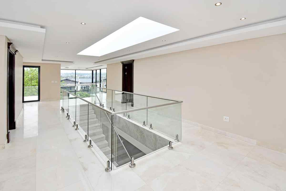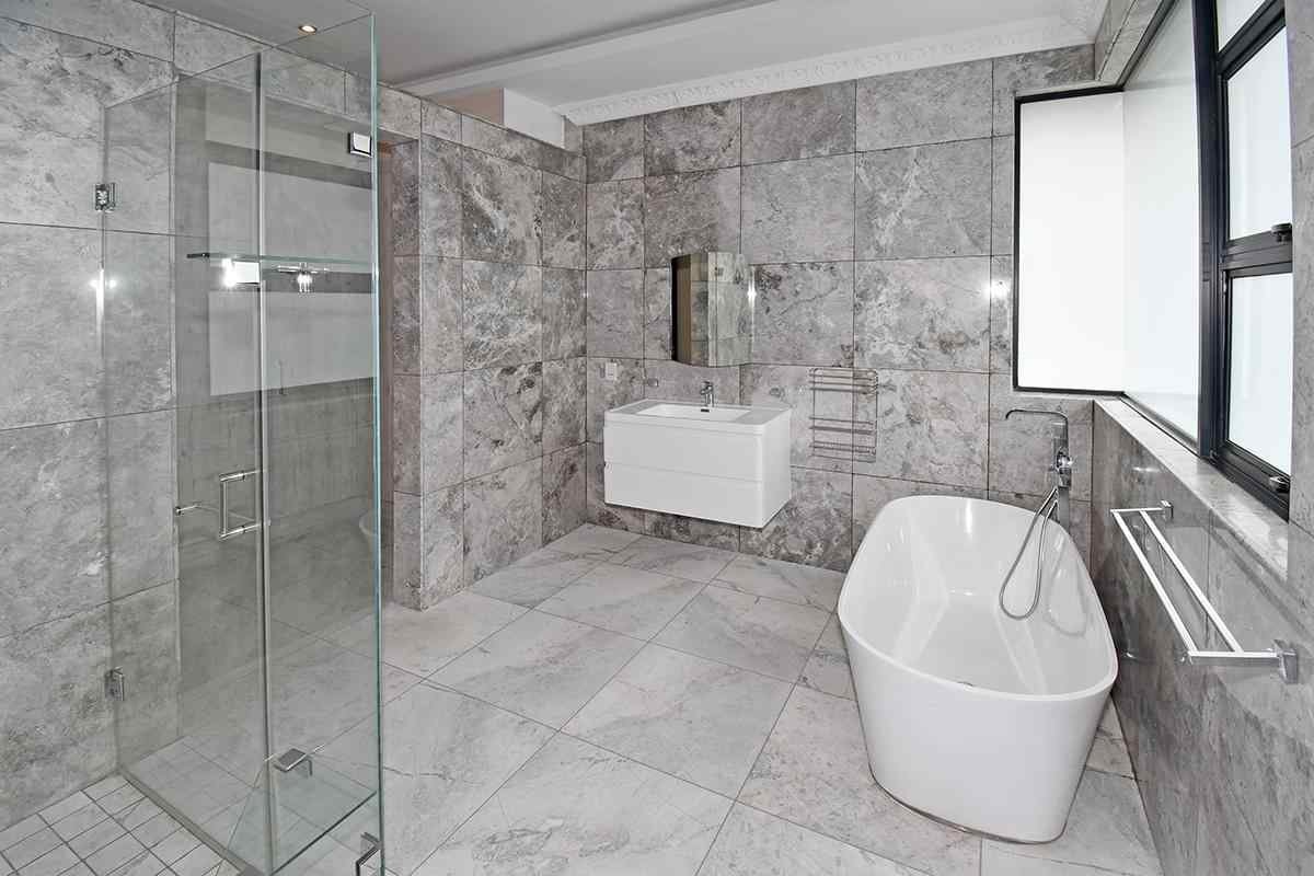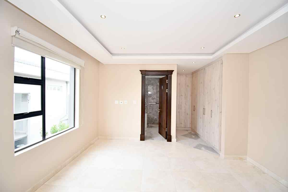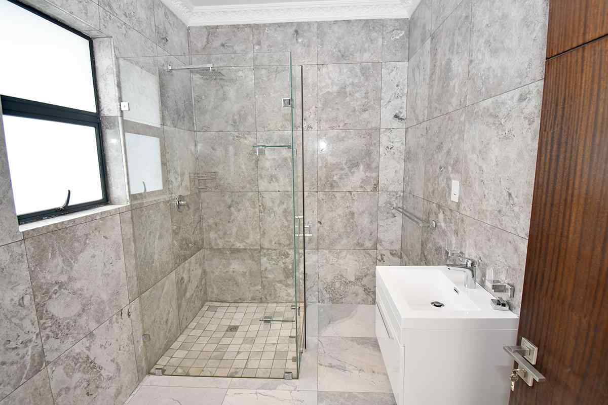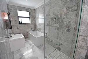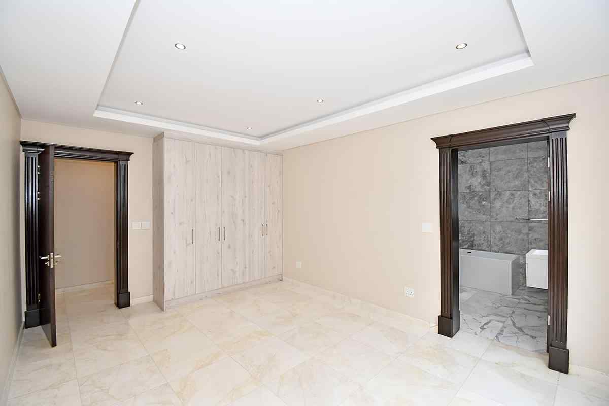 Ascending the beautifully crafted stone-tiled staircase to the upper level, you’ll find a spacious lounge area with travertine flooring and glass stacker doors opening to a large shared balcony overlooking the lush garden and pool below. The upper level houses five generous bedrooms, each with its own luxuriously appointed ensuite bathroom and built-in wardrobes. Some of the bedrooms also enjoy private balcony access with panoramic views of the Waterfall skyline. The Main bedroom is really spacious and boasts a walk-in wardrobe, balcony access through large glass stacker doors and a stunning full bathroom complete with a large shower and stand alone tub, perfect for those long hard days that require a long quiet soak in the tub.