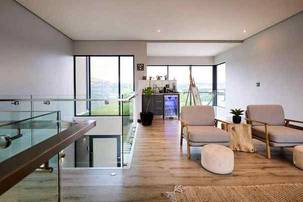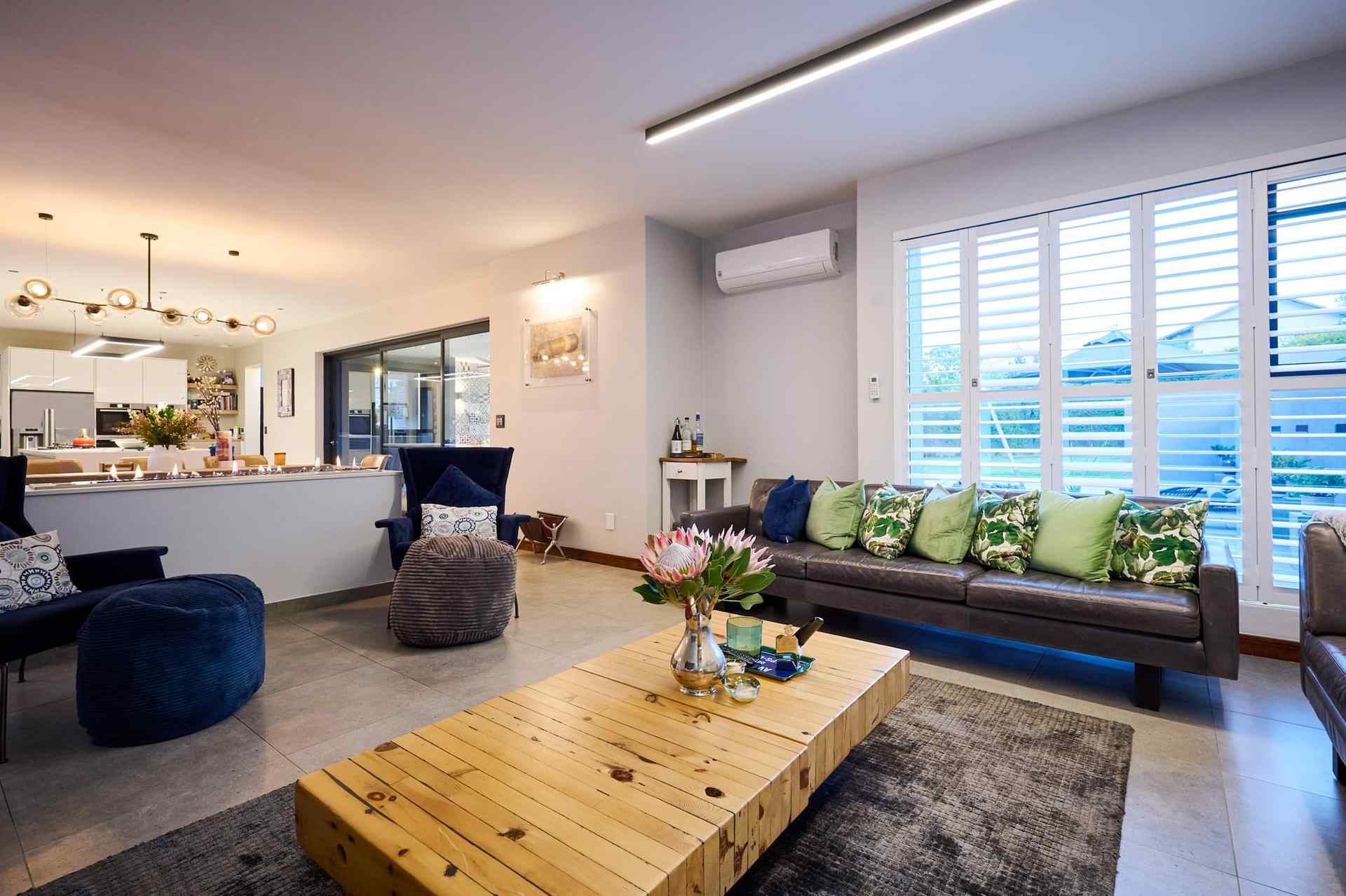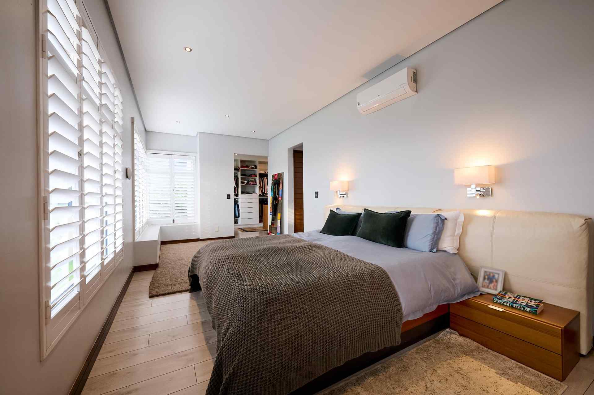 From the moment you step into this gorgeous home, it’s all about space and light – in abundance! Expansive glass panes, soaring double volume spaces, and a neutral palette combine to present a residence that is as sophisticated as it is functional. White plantation shutters and curated light fittings throughout are just a few of the features that emphasize simplicity, sustainability and refined modern living.